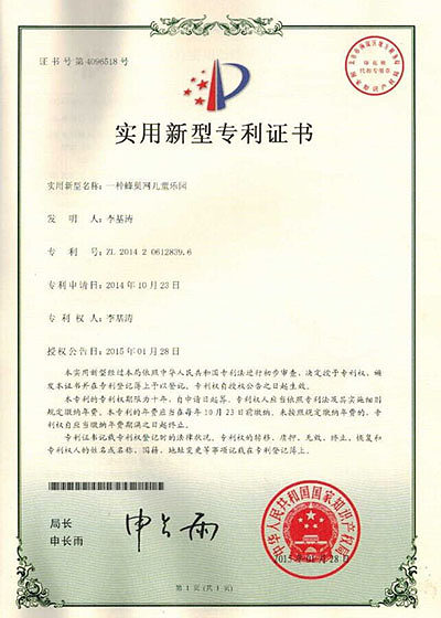 公司先后通过了ISO9001国际质量体系认证、CE认证、TUV认证、SGS等检测认证资质,同时已获得50余项国家专利,是IAAPA、CAAPA、中国玩具和婴童用品等协会会员单位。